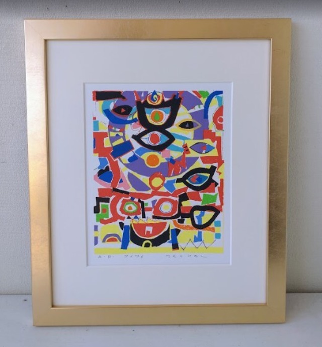 今井 みのり「Eden」 版画 額縁外寸49.0x40.0x2.0cm 内寸47.3x38.2cm 新F4 絵33.0x23.5cm [m-696] ¥22000 今井 みのり プロフィール 1975年4月21日福岡生まれ 高校卒業後、上京 ”元気の出る絵”をテーマに創作活動を開始 ストリートでの活動が認められ、全国のイベントに多数参加 TBSドラマ「FRIENDS」で劇中の壁画などを手がけ、ファン層を拡大する 2001年画集「YELLOW MAN」(二見書房)を発表 同年アールビバンからも作品を発表 2004年ネパールにて曼荼羅絵を学ぶ 2004年暮らしの場を東京からグアムに移す