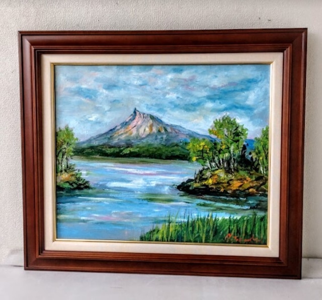 高橋益之「駒ヶ岳風景(大沼)」 油絵 額縁外寸 59.0x49.5x6.0㎝ 絵 45.5x38.0㎝ F8 [m-671] ¥70400 高橋益之(たかはしますゆき) 1944年 利尻島生まれ 1977年 朔日会展に入選 1978年 新道展に入選 1980年 元陽会展に入選 1981年 インターナショナル・ボザールに入選 1982年 ル・サロンに入選 1985年 元陽会会員 1989年 日本芸術作家賞 <所属> 元陽会会員 <特徴> 道内風景を多く描く人気画家 ル・サロン入選 「大沼公園」より「駒ヶ岳」を望む道南の景勝地。 渡島半島南部に位置する「大沼国定公園」。 ラムサール条約登録湿地に指定されている。 函館から約16㎞という立地条件の良さも手伝って訪れる観光客も多い。