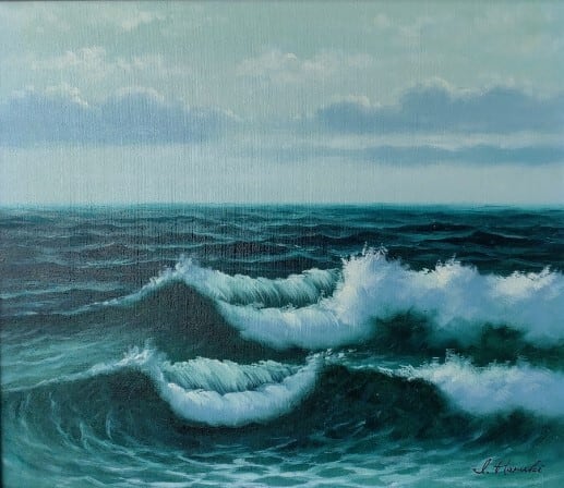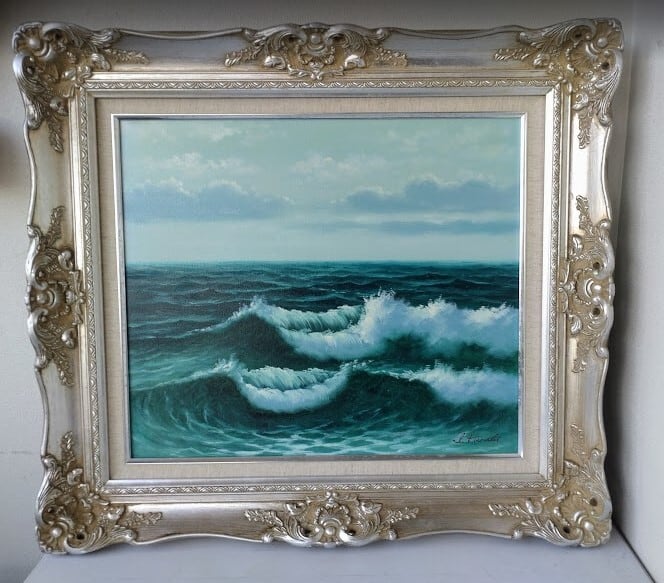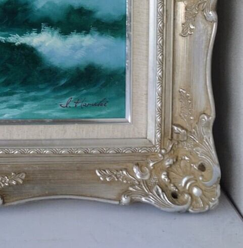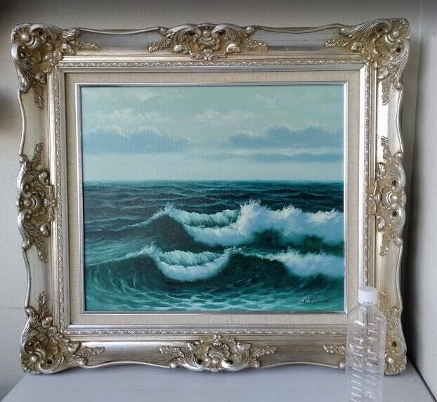 石原 春樹「波濤」油絵 額縁外寸 73.5x66.0x10.0㎝ 絵 53.0x45.5㎝ F10 [m-711]