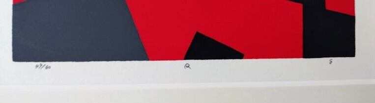 江川 博「Q」 版画 額縁外寸27.0x22.0x2.5cm 内寸25.5x20.3cm 吋 絵16.0x8.0cm [m-708]