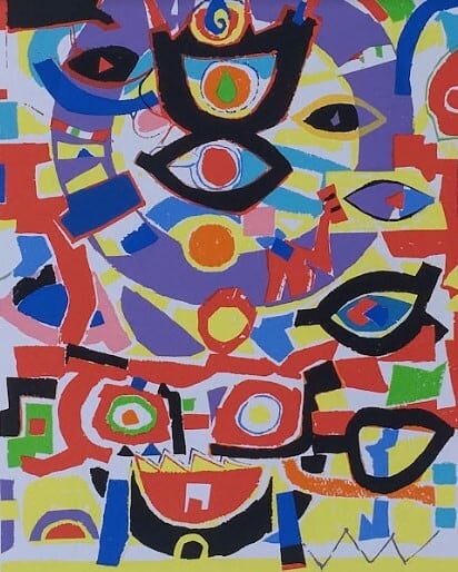 田村 宏(たむらひろし)「ワイワイ」 版画