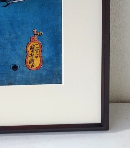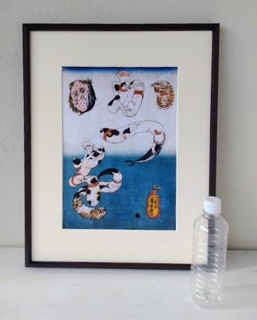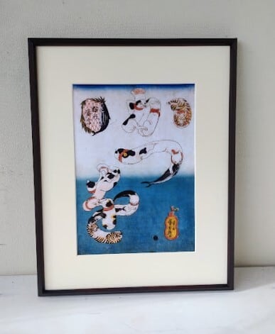 歌川 国芳(うたがわくによし)「猫の当字」 ポスター画 額縁外寸41.5x53.0x1.8cm 内寸39.4x50.9cm 大衣 絵24.5x35.0cm[m-691]