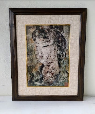 孔 柏基(kong baiji)「供養人」 ポスター画 額縁外寸46.0x58.0x2.0cm 内寸39.4x50.9cm 大衣 絵26.5x38.0cm[m-690]