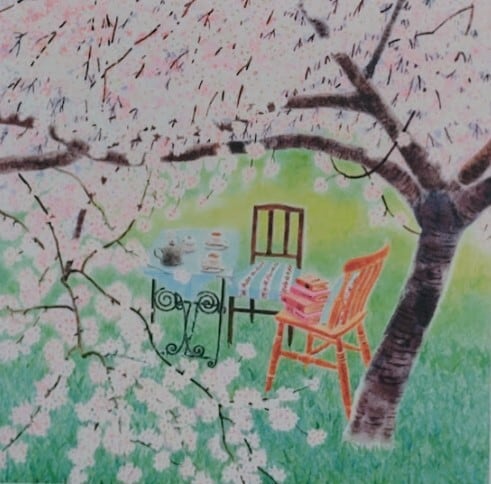 栗乃木ハルミ「Cherry」 版画 4/500 額縁外寸26.5x26.5x2.2cm 内寸25.0x25.0cm 八ツ 絵15.0x15.0cm [k-453]