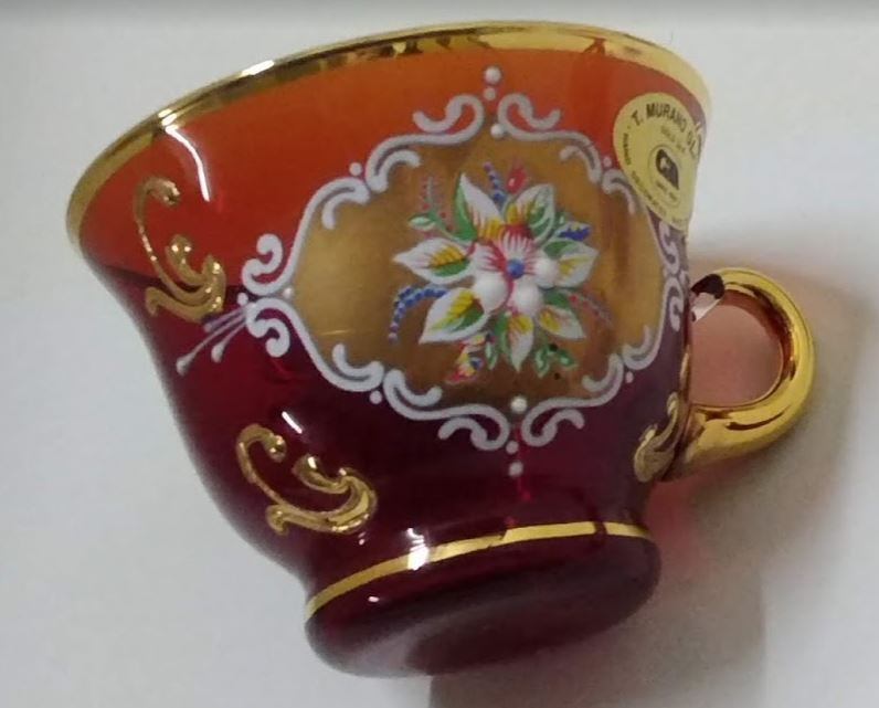 イタリア製の人気の赤いヴェネチアグラスのカップ&ソーサーセットです。