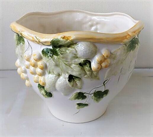 大型プランター イエロー ブドウ ポルトガル製 アルコバッサ 陶器ハンドメイド・ハンドペイント 底穴あり 外寸34㎝x34㎝x高さ約27㎝ psu-h8700a-y [z-816] | 額縁・絵画の平和堂