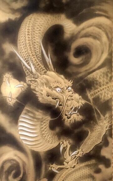 今井玲豊「開運 金龍」 掛け軸外寸 幅54.5x丈190㎝ 桐箱サイズ64.0x9.0x8.0cm 桐箱入り [k-444]