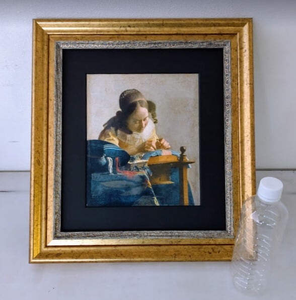 フェルメール「レースを編む女」 ジクレー、シルクスクリーンツヤ加工・版画用紙の額装品 額縁外寸39.0x42.5x2.5cm 内寸30.1x33.6cm 絵20.0x23.5cm [k-430] | 額縁・絵画の平和堂